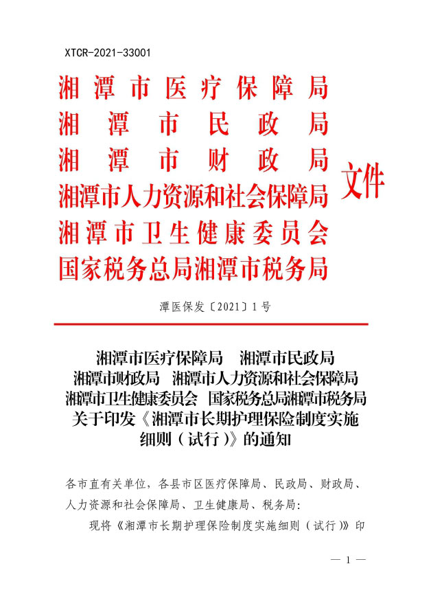 潭醫(yī)保發(fā)〔2021〕1號湘潭市長期護(hù)理保險(xiǎn)實(shí)施細(xì)則